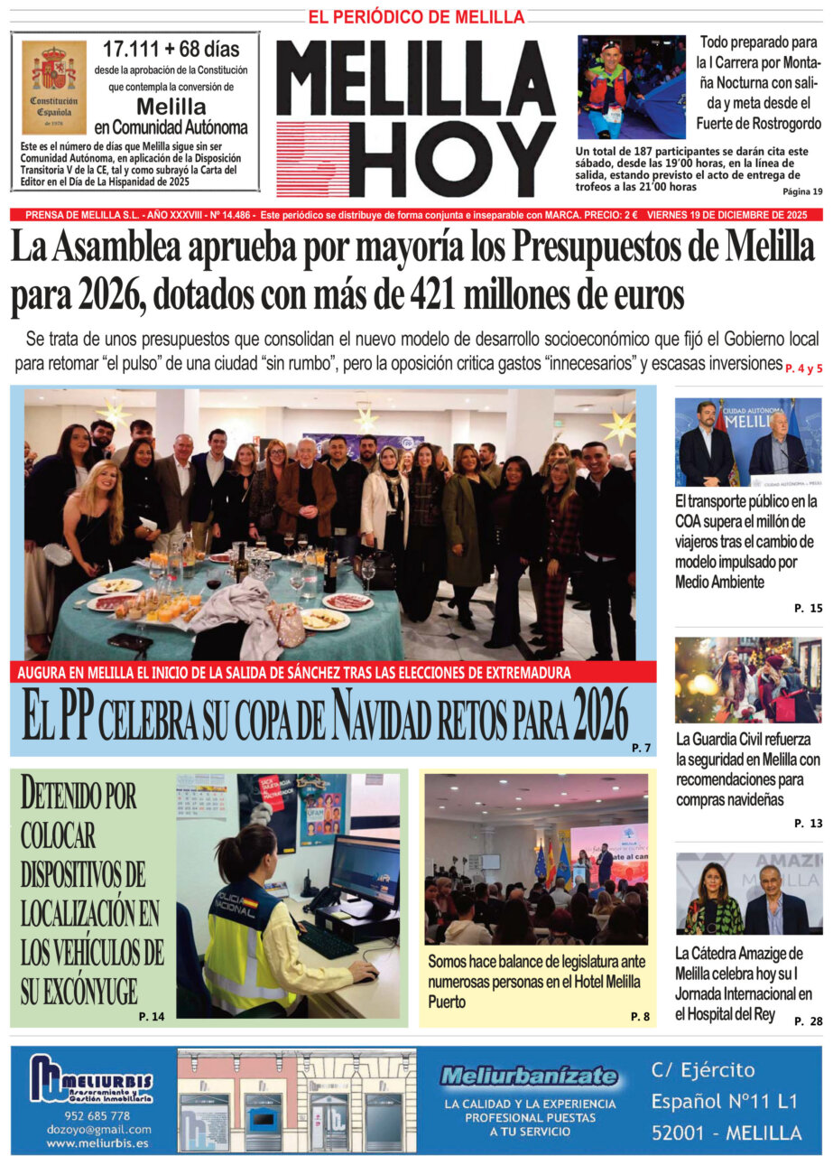 La portada del periódico Melilla Hoy destaca los presupuestos para 2026.