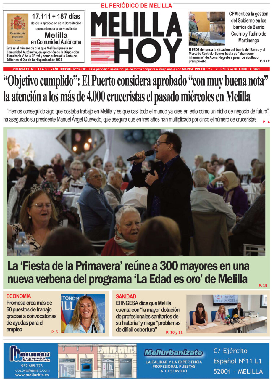 Consulta la portada del periódico Melilla Hoy del 24 de abril de 2026.