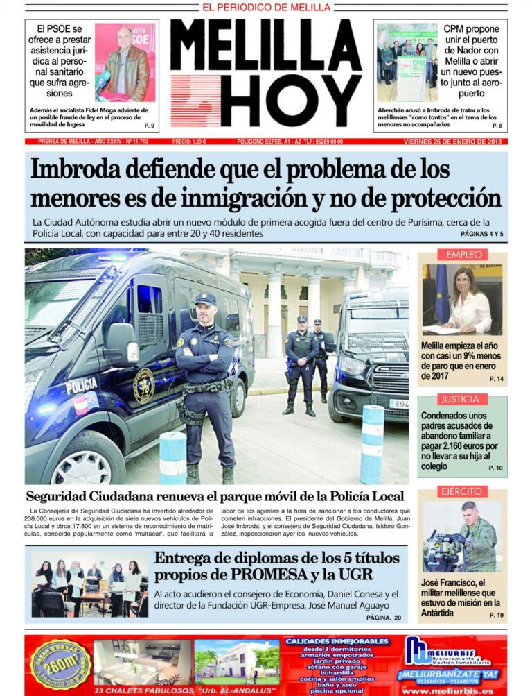 Consulte la portada de MELILLA HOY del viernes 26 de enero de 2018