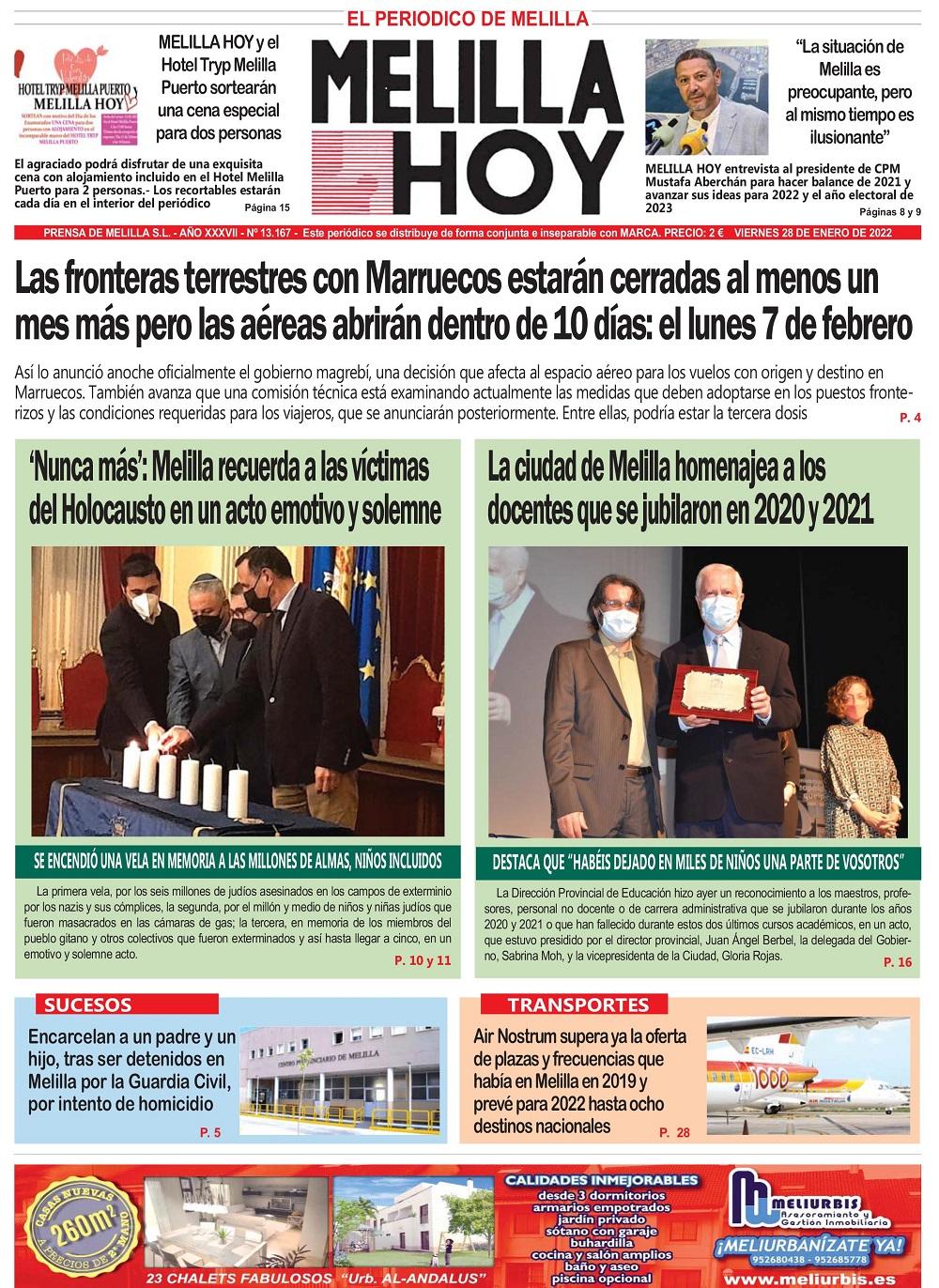 Consulte la portada de MELILLA HOY del VIERNES 28 de enero de 2022