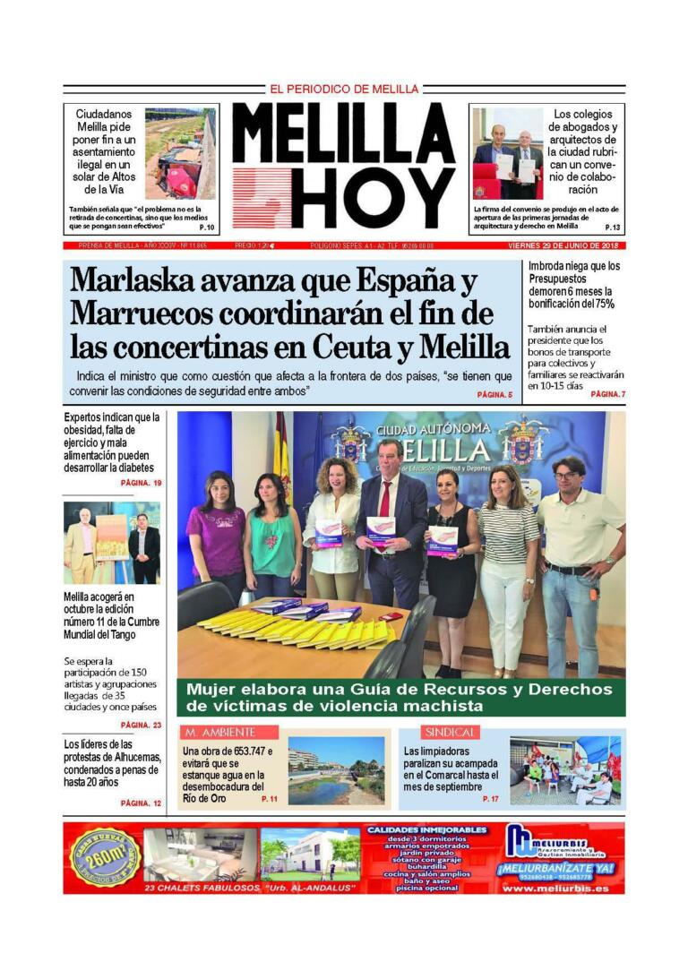 Consulte la portada de MELILLA HOY del VIERNES 29 de junio de 2018