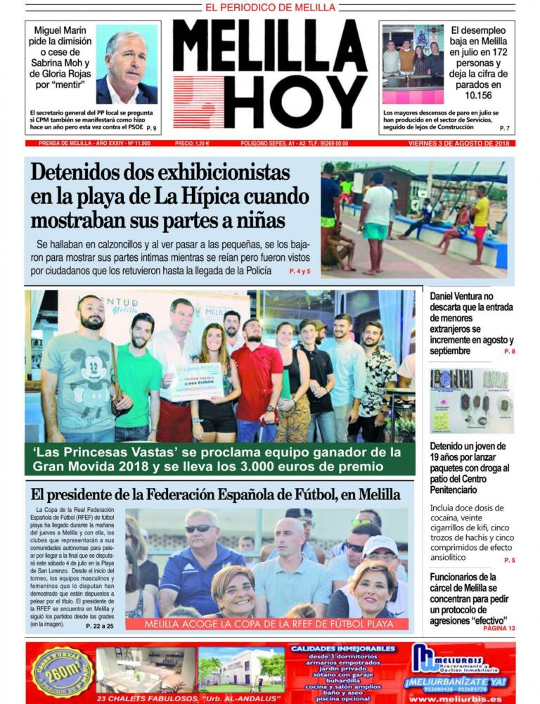 Consulte la portada de MELILLA HOY del VIERNES 3 de agosto de 2018