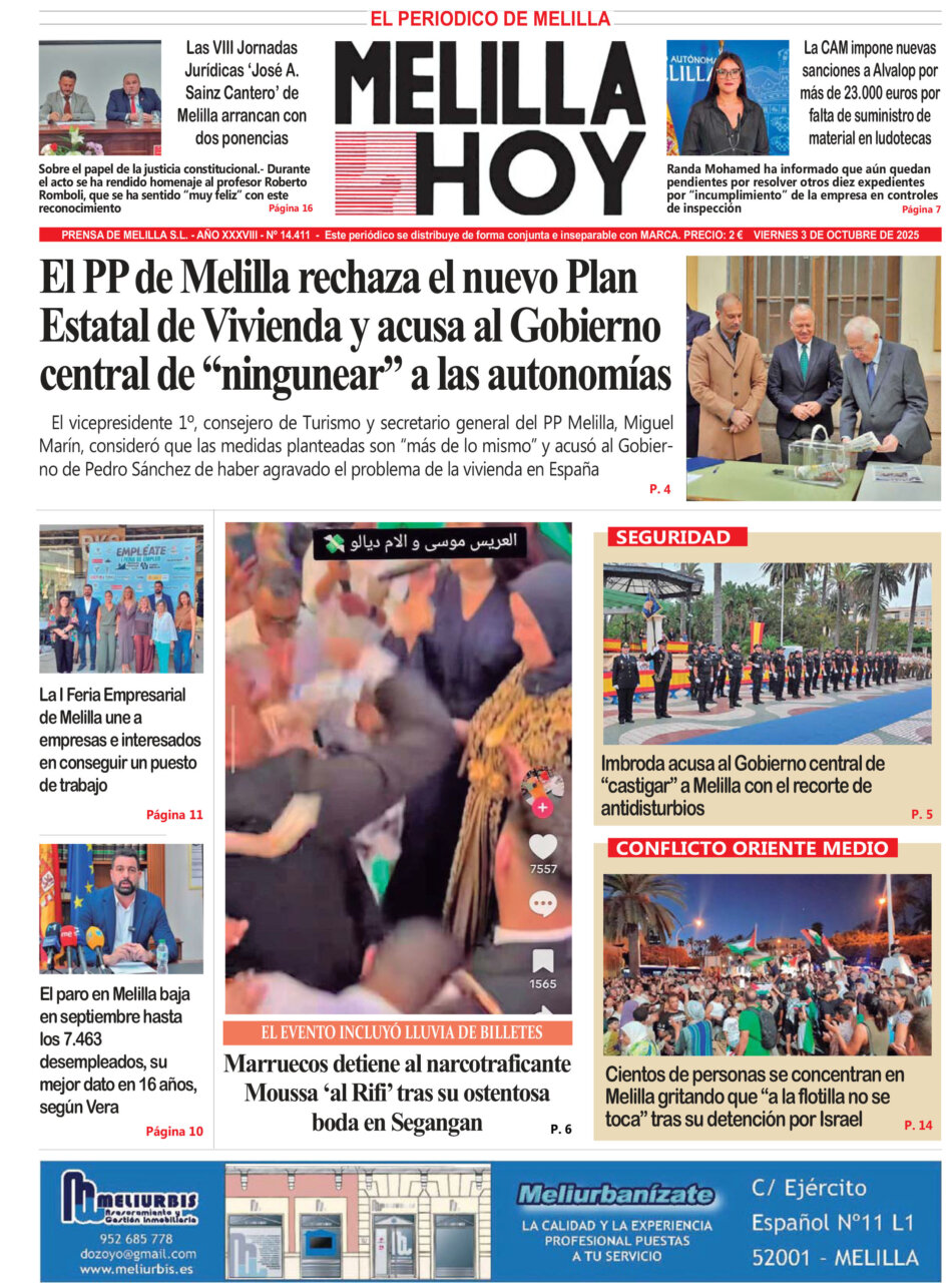 Consulta la portada del periódico Melilla Hoy del 3 de octubre de 2025.