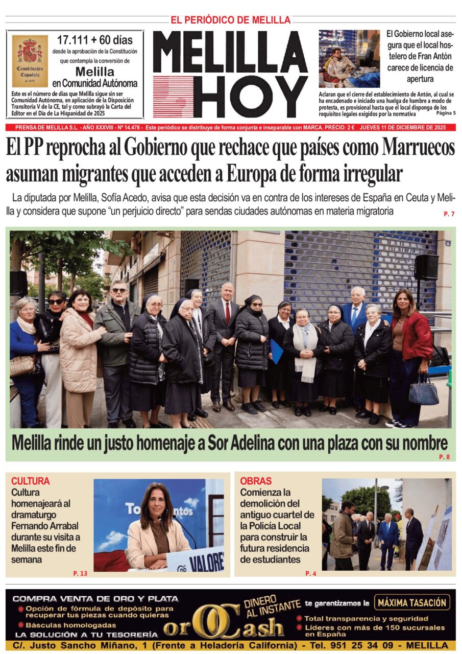 Consulta la portada del periódico Melilla Hoy del 11 de diciembre de 2025.