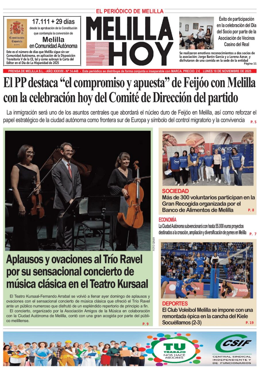 Consulta la portada del periódico Melilla Hoy del 10 de noviembre de 2025.