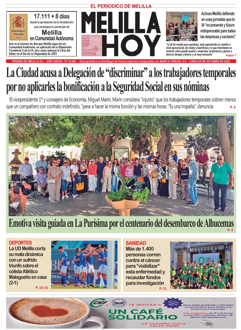 Consulta la portada del periódico Melilla Hoy del 20 de octubre de 2025.