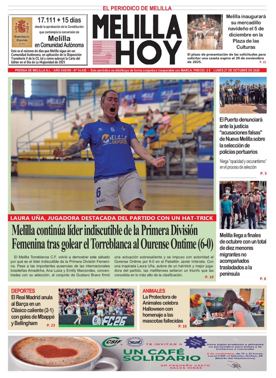 Consulta la portada del periódico Melilla Hoy de este lunes.