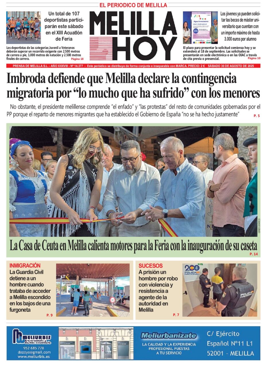Consulte la portada del MELILLA HOY del sábado 30 de agosto de 2025