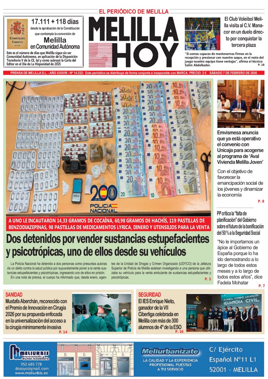 Portada del diario Melilla Hoy con noticias locales del 7 de febrero de 2026.