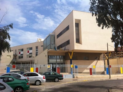 Vista exterior de una escuela moderna en Melilla, destacando su arquitectura.