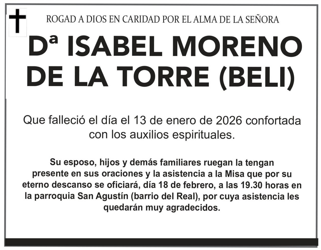 Anuncio de misa por el alma de Dª Isabel Moreno de la Torre (Beli).