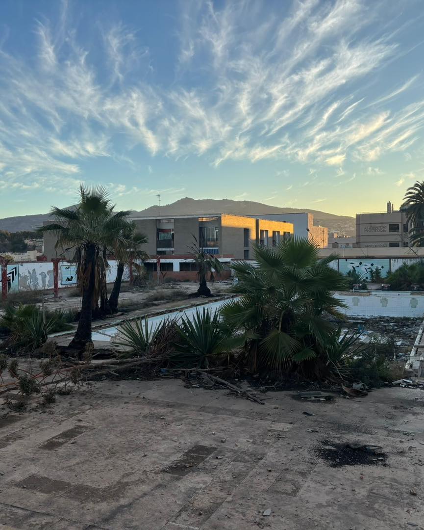 Las palmeras del tanatorio quedaron calcinadas tras un incendio. La policía detuvo a tres sospechosos.