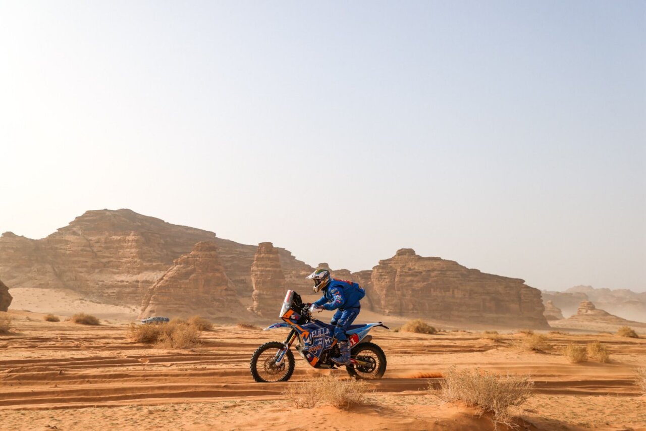 Los pilotos melillenses volvieron a ser protagonistas en la cuarta etapa del Rally Dakar 2026, disputada íntegramente con salida y llegada en Al-Ula, en pleno desierto de Arabia Saudí, sobre un recorrido cronometrado de 495 kilómetros especialmente exigente. En la categoría de motos, Borja Pérez completó la jornada en la 64ª posición, mientras que Rachid Al-Lal Lahadil cruzó la meta en el puesto 73º, ambos logrando superar una de las etapas más duras del inicio de la prueba. Por su parte, en coches, el copiloto melillense Diego Ortega firmó una destacada actuación junto al piloto polaco Michal Goczal, en la sexta posición de la etapa.