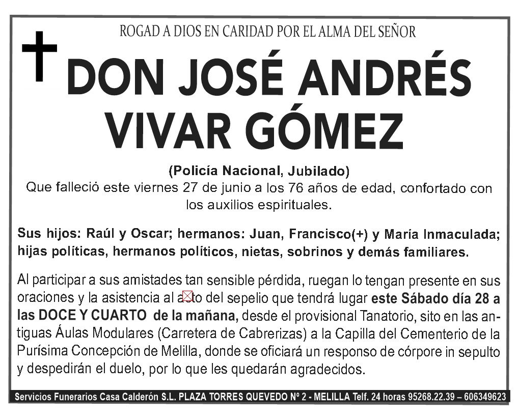 DON JOSÉ ANDRÉS VIVAR GÓMEZ (Policía Nacional, Jubilado)