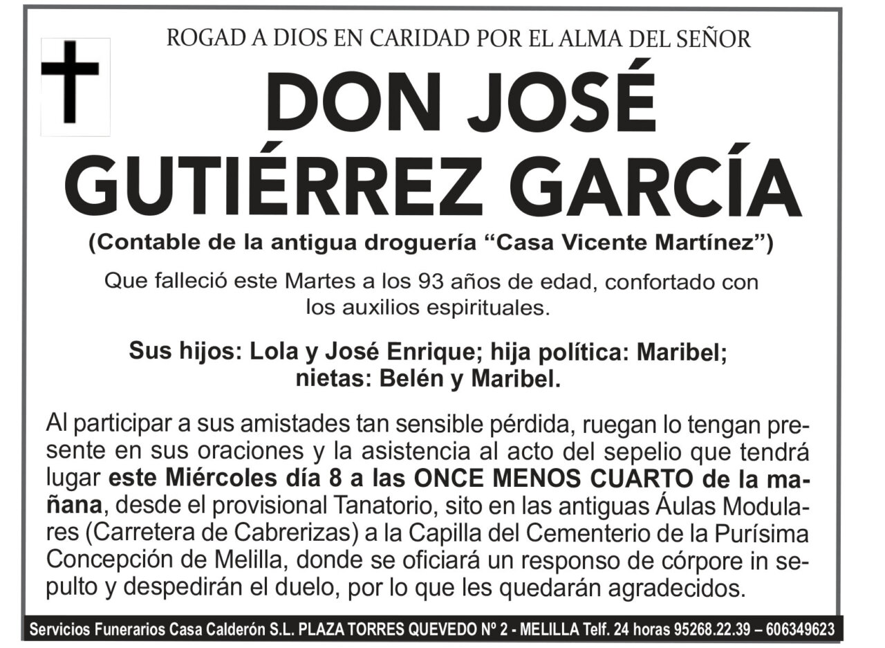 Esquela en honor a Don José Gutiérrez García, contable de Casa Vicente Martínez.