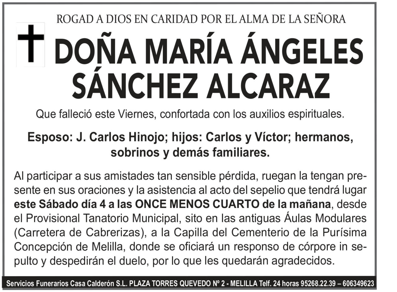 Anuncio de fallecimiento de Doña María Ángeles Sánchez Alcaraz.