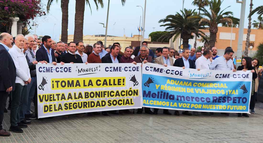 Los ciudadanos de Melilla se manifiestan por la recuperación de bonificaciones en la Seguridad Social.