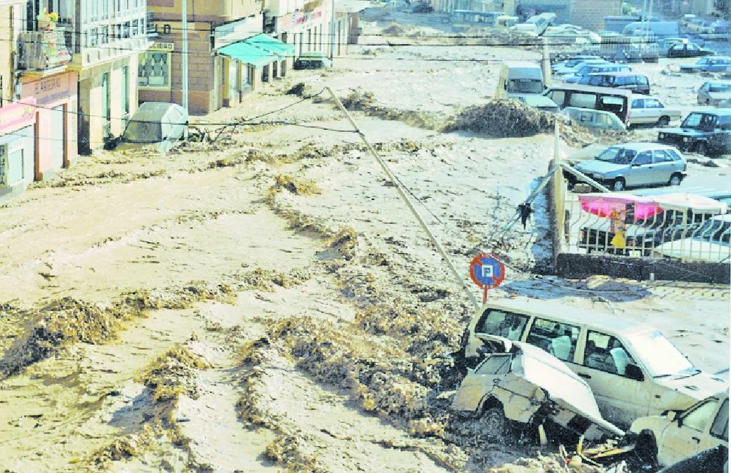 Imagen de la enorme y destructiva riada que provocó la rotura del depósito de Cabrerizas hace 25 años, que causó la muerte de 11 personas y destruyó la Urbanización Averroes