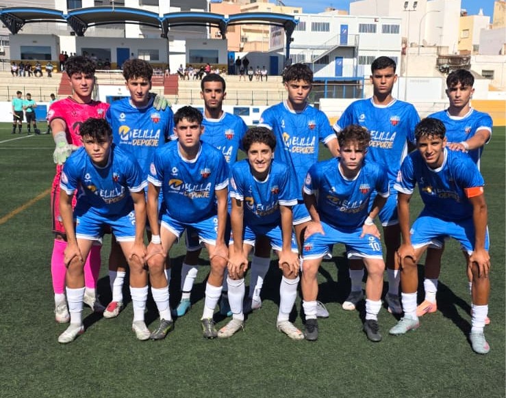 El equipo juvenil del C.F. Rusadir se prepara para su próximo partido.