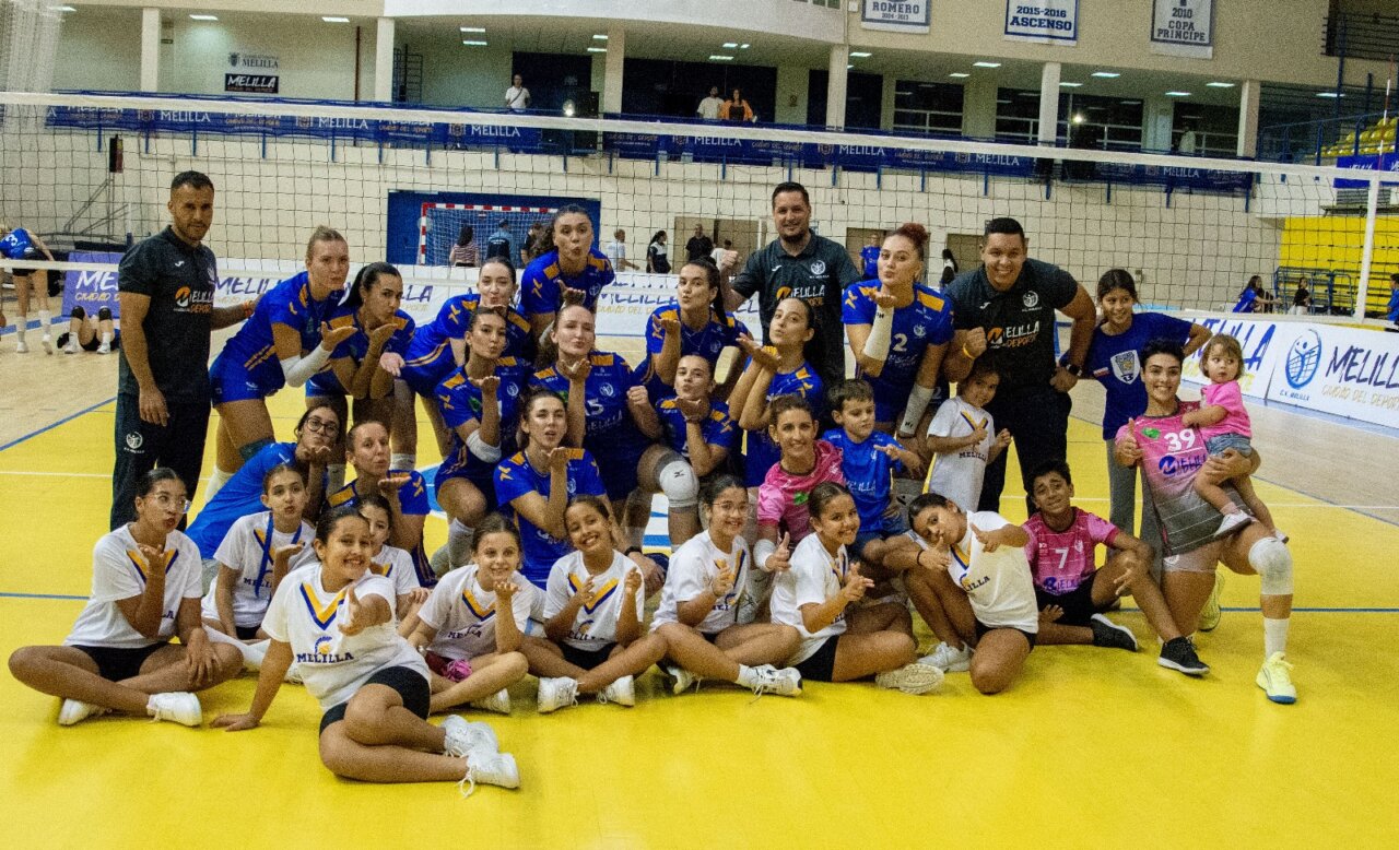 El Club Voleibol Melilla celebra su primera victoria en la Liga Iberdrola.