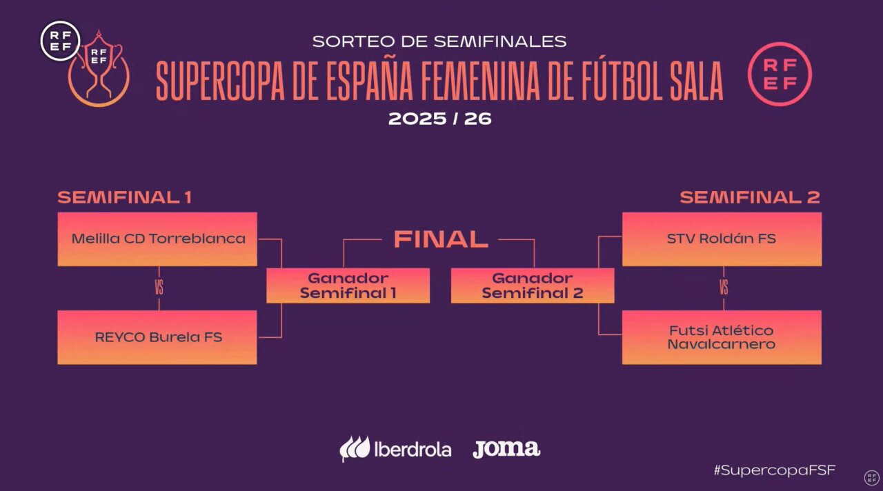 El Melilla Torreblanca C.F. ya conoce su rival para las semifinales de la Supercopa de España femenina de fútbol sala, que se disputarán los días 31 de enero y 1 de febrero de 2026 en el Pabellón de Las Torres, en Adeje (Tenerife). Las melillenses se medirán al Reyco Burela F.S. el sábado 31 de enero, en un encuentro que será retransmitido en directo por Teledeporte.