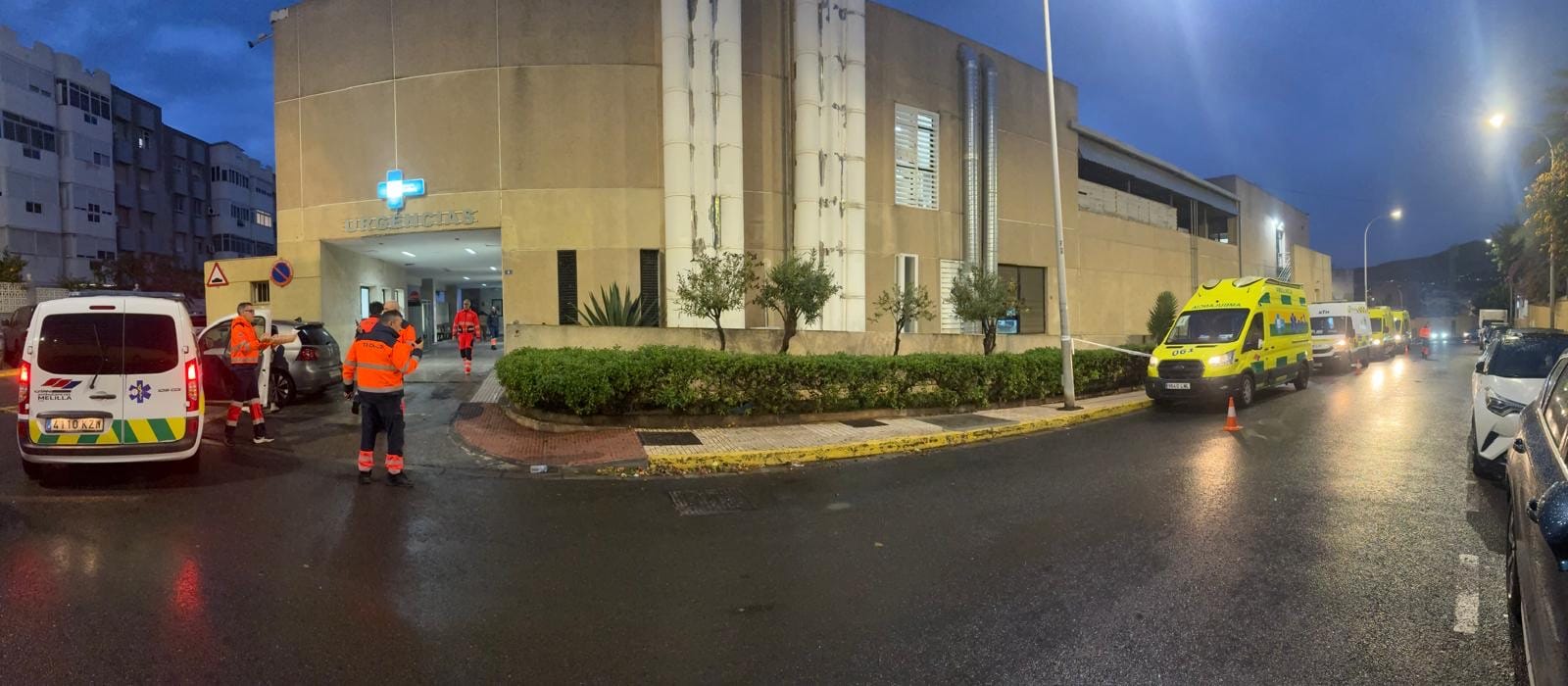 Personal de emergencias y ambulancias en la entrada del hospital de Melilla.