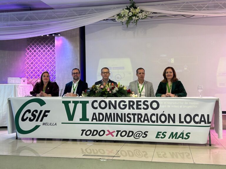 El pasado viernes 21 de noviembre se llevó a cabo el VI Congreso de CSIF Administración Local en Melilla. La reunión concluyó con la reelección de Giovani Portillo Trujillo como presidente del sector. El acto contó con la presencia de diversas personalidades, incluyendo a Luis Escobar Ruiz, presidente autonómico de CSIF Melilla, quien tuvo a su cargo la inauguración del congreso.