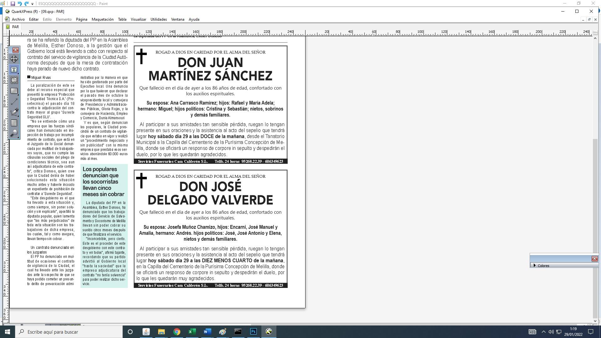 Al participar a sus amistades tan sensible pérdida, ruegan lo tengan presente en sus oraciones y la asistencia al acto del sepelio que tendrá lugar hoy sábado día 29 a las DIEZ MENOS CUARTO de la mañana, en la Capilla del Cementerio de la Purísima Concepción de Melilla, donde se oficiará un responso de corpore in sepulto y despedirán el duelo, por lo que les quedarán muy agradecidos.