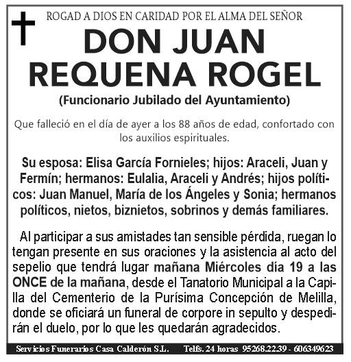 ROGAD A DIOS EN CARIDAD POR EL ALMA DEL SEÑOR DON JUAN REQUENA ROGEL (Funcionario Jubilado del Ayuntamiento)