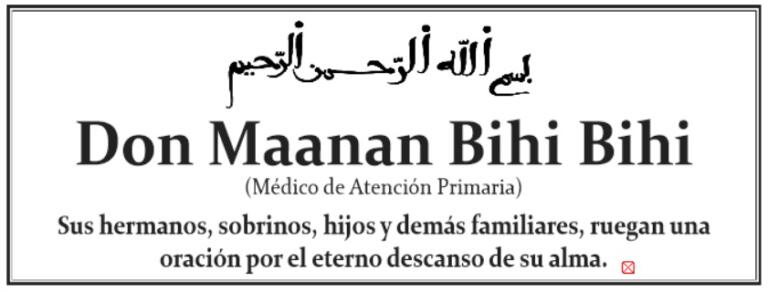 Esquela de Don Maanan Bihi Bihi (Médico de Atención Primaria)