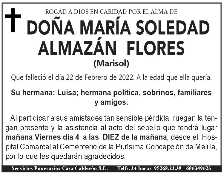 Esquela de Doña María Soledad Almazán Flores (Marisol)
