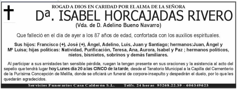 Ruegan una oración por su alma y la asistencia a la Santa Misa que se oficiara hoy Lunes día 1 a las OCHO de la tarde, en la Parroquia de la Castrense, por lo que les quedarán muy agradecidos. ROGAD A DIOS EN CARIDAD POR EL ALMA DE LA SEÑORA
