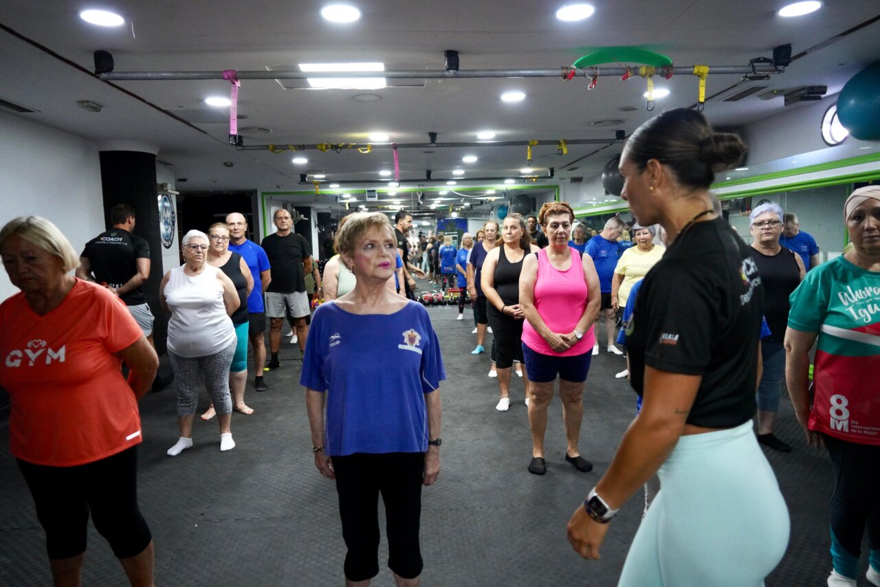 Un grupo de 40 personas mayores acuden a diario –de lunes a jueves– al gimnasio Olympic Center para realizar ejercicios de fuerza dentro de un proyecto cuyo objetivo es fortalecer su salud y fomentar un envejecimiento activo. El programa, que tiene una duración de siete semanas, forma parte de las iniciativas del plan ‘La vida es oro’, impulsado por la Consejería del Mayor.