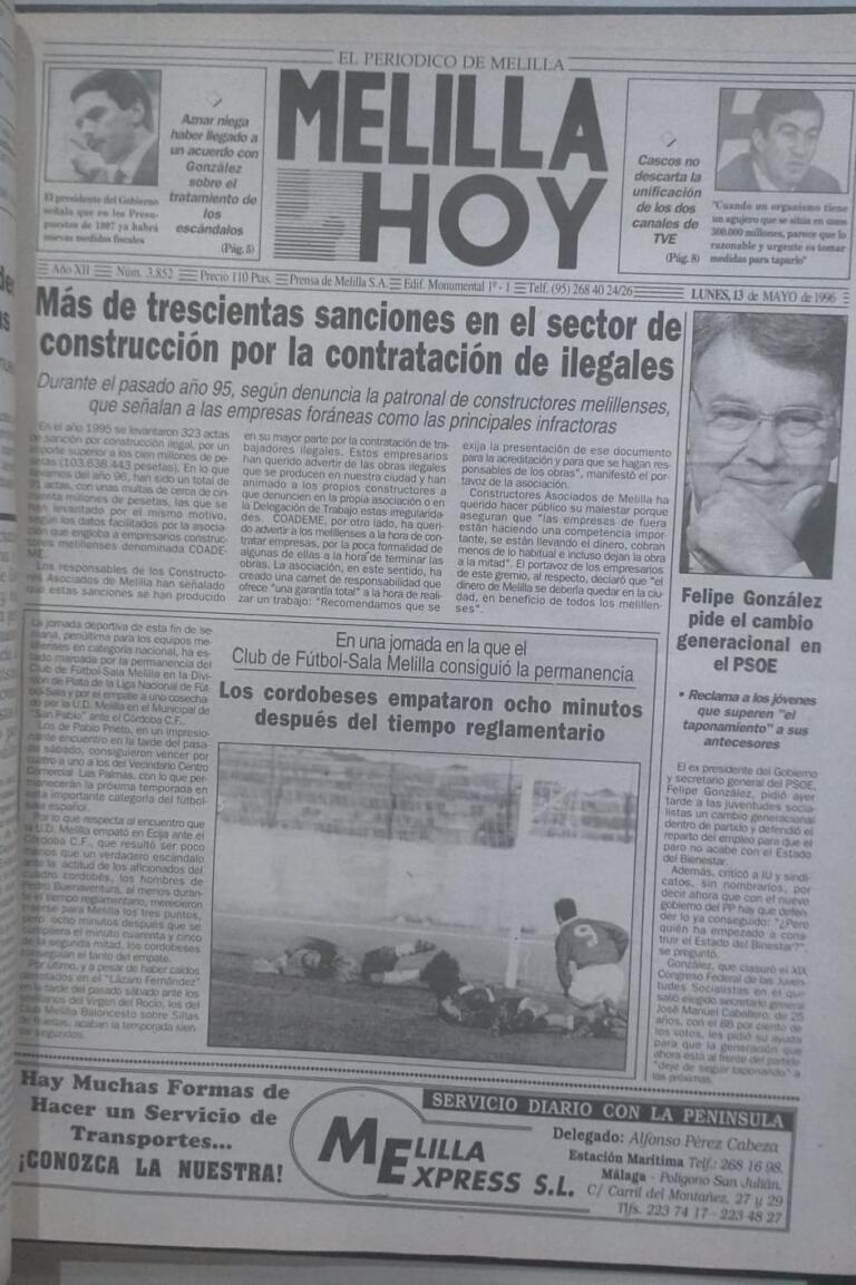 Durante el año 1995, según denuncia de la patronal de constructores melillenses, se impusieron en la ciudad más de trescientas sanciones en el sector de la construcción por la contratación de ilegales. La patronal local señalaba a las empresas foráneas como principales infractoras.