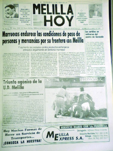 La U.D. Melilla vencía al C.D Maspalomas por la mínima, 1-0. Se acentuaba el rumor de que el gobierno marroquí pretendía cerrar la frontera con Melilla, como una forma de intento de presión psicológica contra los melillenses y el gobierno español en momentos en los que se volvía a hablar del estatuto de autonomía de la ciudad. Marruecos endurecía las condiciones de paso de personas y mercancías por los puestos melillenses, hasta el punto de no dejar pasar a los que no tuvieran la residencia en Nador e incluso llegando al punto de expulsarlos a su lugar de origen.También se realizaban redadas para decomisar productos extranjeros entrados ilegalmente en territorio del vecino país.