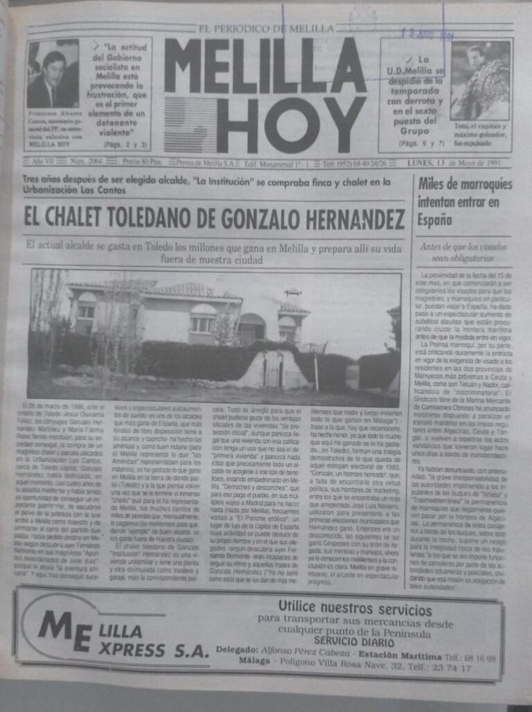 Melilla vivía inmersa esos días en la campaña electoral para las elecciones municipales que se celebrarían a finales de mes. El periódico publicaba en exclusiva una entrevista con el secretario general del PP a nivel nacional, Francisco Álvarez Cascos, quien manifestaba que su partido defendía "a ultranza ,a españolidad de Ceuta y Melilla". Cascos manifestaba que la actitud del gobierno del PSOE para con Melilla creaba una importante frustración entre los melillenses.