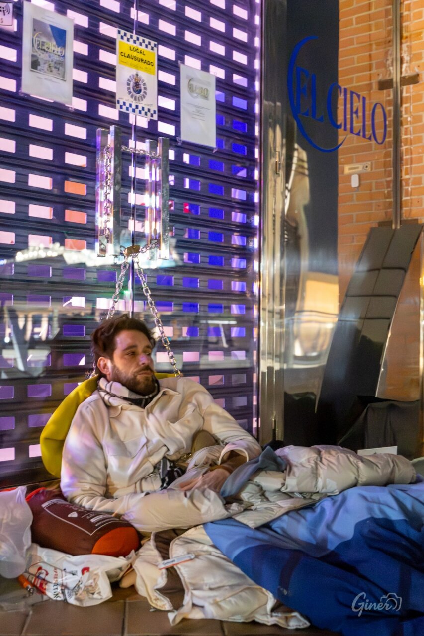 Fran Antón se manifiesta en huelga de hambre frente al local El Cielo en Melilla. La situación ha generado controversia legal.