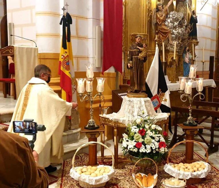 Una vez finalizada la Santa Misa, se procedió al reparto de los panecillos bendecidos entre todos los asistentes y se anunció el nombre del pregonero oficial de San Antonio de Padua 2022, resultando elegido Carlos Rubiales