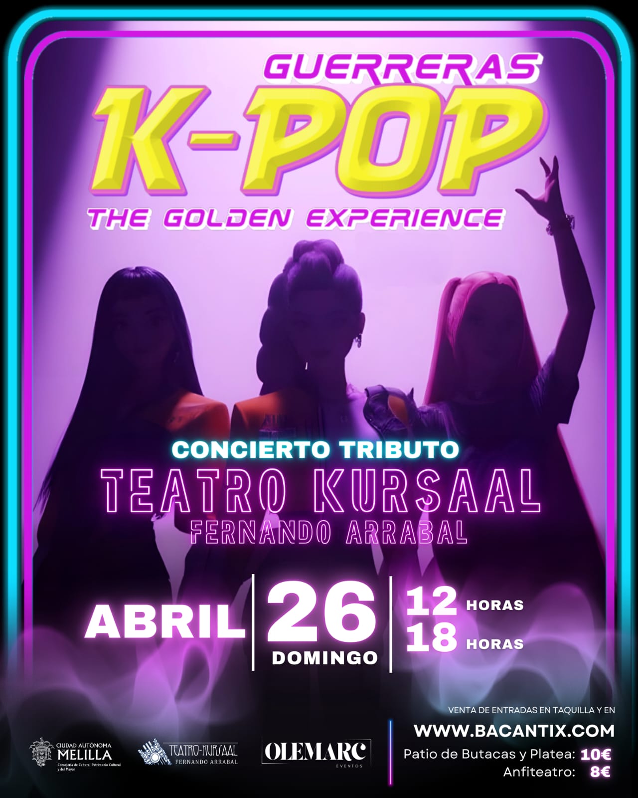 La Consejería de Cultura, Patrimonio Cultural y del Mayor de la Ciudad Autónoma de Melilla ha anunciado la llegada del espectáculo «Guerreras K-Pop: The Golden Experience» al Teatro Kursaal Fernando Arrabal. Este evento, programado para el próximo domingo, 26 de abril, ofrecerá dos funciones a las 12:00 y a las 18:00 horas.