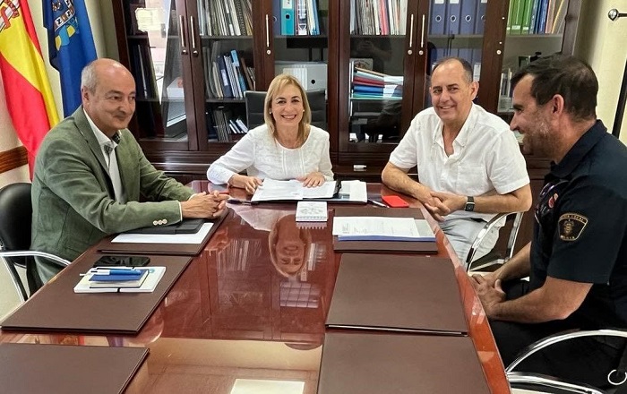 La consejera de Salud Pública y Bienestar Animal, Paqui Maeso, junto al director general del área, Juan Luis Cabanillas, se ha reunido con el presidente del Colegio de Veterinarios, Rafael Serrano, y con Víctor Manuel Sánchez, miembro de la Unidad de Protección Animal de la Policía Local, con motivo de la puesta en marcha del contrato menor de asistencia clínica veterinaria básica de animales domésticos vagabundos, enfermos y heridos, así como las vacunaciones preventivas en el centro de acogida.