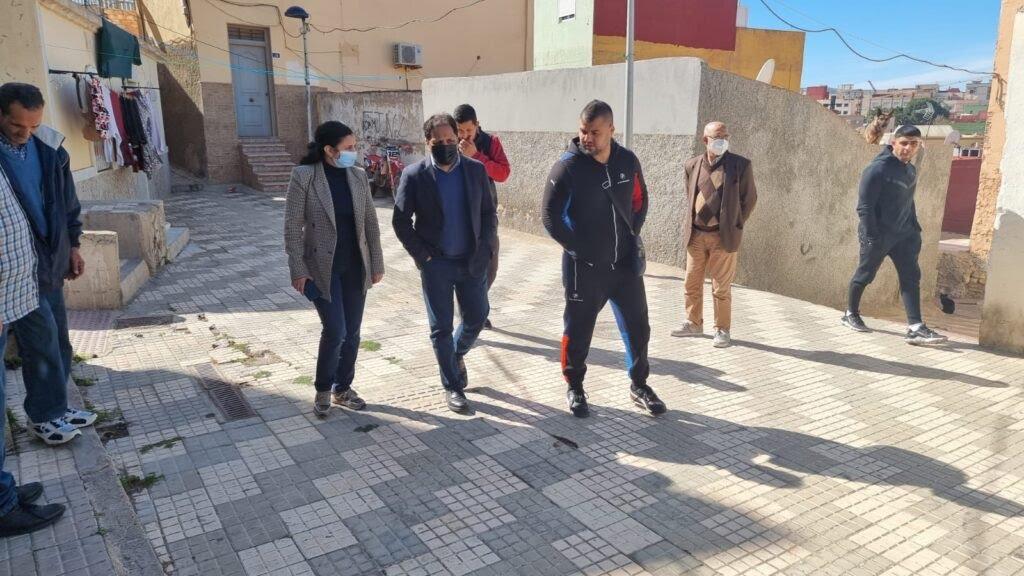 El consejero de Medio Ambiente y Sostenibilidad, Hassan Mohatar, y la viceconsejera de Incidencias y Línea Verde, Yonaida Sel-lam, han visitado este jueves la zona alta del Rastro a petición de Ambos miembros del Gobierno de la Ciudad han comprobado el estado de estas calles, así como de la red de saneamiento y del pavimento