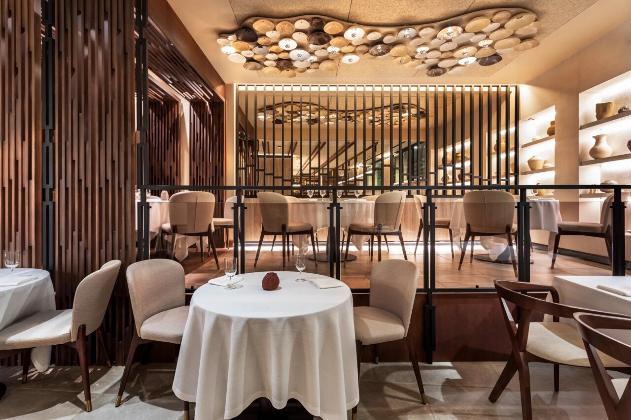 En la selección de mariscos y pescados, destacan el ceviche de lubina con maíz, tomate de árbol, maracuyá y coco, la raya frita con pil pil y kimchi, y el skrei con papapomodoro y bouillabaisse.