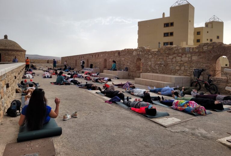 A pesar de que inicialmente los yoguis tuvieron que resguardarse de la lluvia en el Fuerte Victoria Grande, donde se realizó una pequeña toma de contacto con la meditación, tras unos minutos se pudo retomar la clase con total normalidad en el Fuerte Victoria Chica. Allí se realizó una secuencia de posturas de yoga para estirar todo el cuerpo y soltar tensiones, técnicas de respiración o Pranayama, entre otras, finalizando la jornada con una último ejercicio de relajación, según comentan desde la Comunidad Hindú de Melilla.