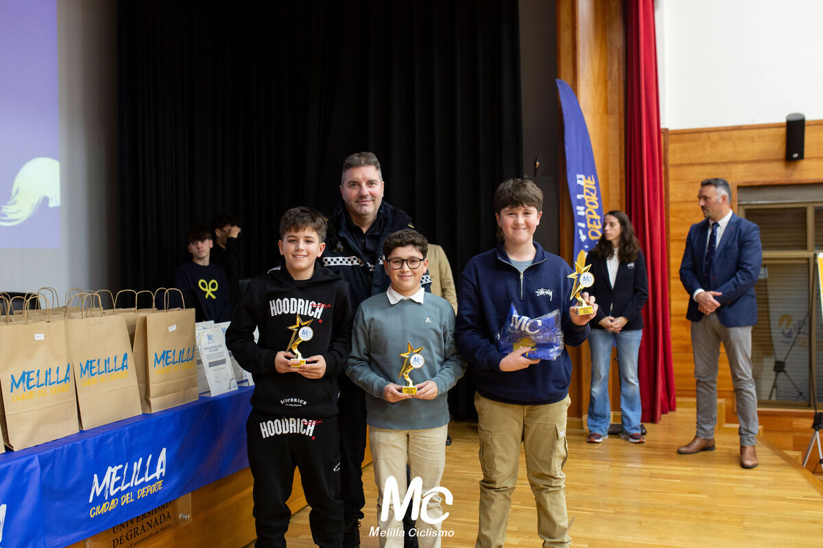El pasado viernes, la Federación Melillense de Ciclismo premió a los mejores ciclistas de la pasada temporada 2025. El acto tuvo lugar en el salón de actos de la Universidad de Granada, y al mismo acudieron el consejero de Educación Juventud y Deporte, Miguel Ángel Fernández; la delegada del Gobierno, Sabrina Moh; el comandante general de Melilla, Luis Cortés; el coronel jefe de la Guardia Civil, Jesús Rueda, acompañado del teniente coronel; la vicedecana de FAEDUMEL, Amaya Epelde; el director general de Instalaciones Deportivas, Miguel Ángel Guillén, así como representantes de la Policía Local, Agentes de Movilidad y de Protección Civil. Además, estuvieron presentes la seleccionadora nacional de ciclismo paralímpico, Begoña Luis, y la campeona del mundo de la modalidad, Manuela Voss, que aprovecharon la invitación de la territorial para conocer de primera mano los detalles técnicos sobre los que se están diseñando los recorridos del Campeonato de España de Carretera Paralímpico del próximo verano.