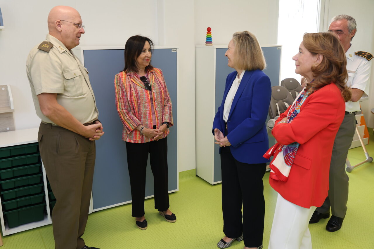 La ministra de Defensa, Margarita Robles, ha visitado, acompañada de la secretaria de Estado de Defensa, Amparo Valcarce, y la subsecretaria, Adoración Mateos, el nuevo centro de educación infantil del Hospital Central de la Defensa Gómez Ulla, en Madrid, que se ha puesto en marcha este mes de septiembre.