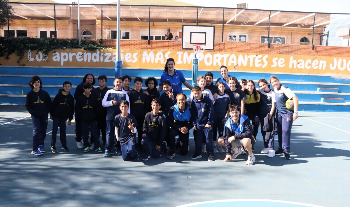 Grupo de estudiantes posando en la cancha de baloncesto de la escuela Enrique Soler
