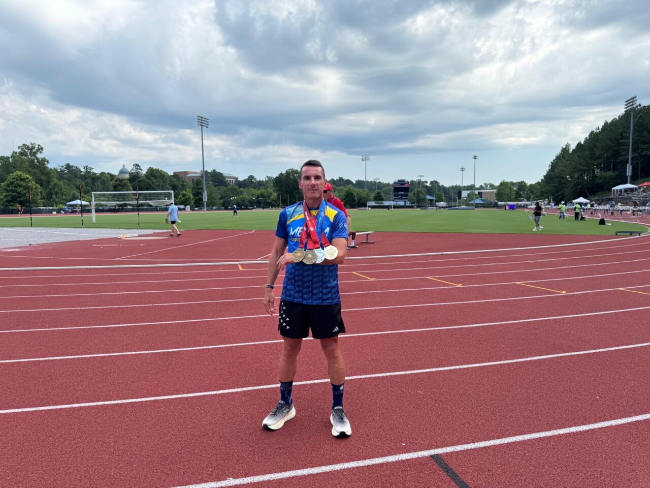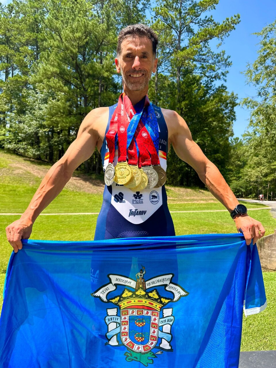 Luis Miguel Ruiz, en la categoría de 40 a 44 años, se colgó seis medallas: tres de oro, dos de plata y uno de bronce. Conquistó el primer puesto en el Triatlón Olímpico, en la prueba de 5 kilómetros cross y en los 1.500 metros en pista. Además, fue segundo en los 5 kilómetros en pista y en la prueba de aguas abiertas (3.200 metros), y logró la medalla de bronce en los 1.500 metros de natación en piscina.