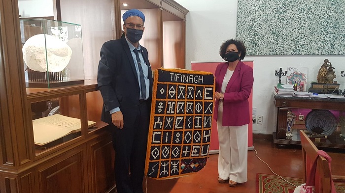 La rectora de la Universidad de Granada, Pilar Aranda Ramírez, recibió ayer viernes por la mañana en su despacho al presidente de la Asamblea Mundial Amazighe, Rachid Raha, quien tuvo la amabilidad de exponerle la actualidad de la cuestión amazigh, ofrecerle su nuevo libro en español ‘¿Qué quieren los Imazighen?’, así como el informe de trabajo de la décima asamblea general de los Amazighs del mundo que tuvo lugar últimamente en Ouarzazate.