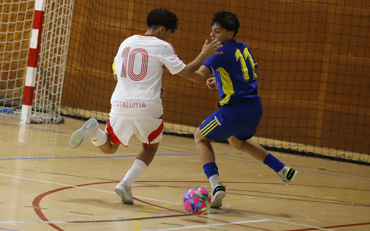 Melilla concluyó este domingo su participación en la primera fase del Campeonato de España de Selecciones Autonómicas de Fútbol Sala Sub-14 con derrota ante Cataluña por 2-0, pero plantando cara a uno de los mejores combinados del país. Los melillenses salieron al partido con las ideas muy claras, una buena defensa a tres cuartos de cancha y con su juego de pívot en ataque. Nacho estuvo a punto de abrir el marcador con un remate al segundo palo, pero salió rozando el poste. Los catalanes comenzaban a elaborar jugadas, aunque no conseguía batir a un inspirado Óscar, mientras que los de la ciudad autónoma seguían con su buen juego, pero tampoco podían con el portero rival. Al descanso se llegó con el 0-0 inicial.