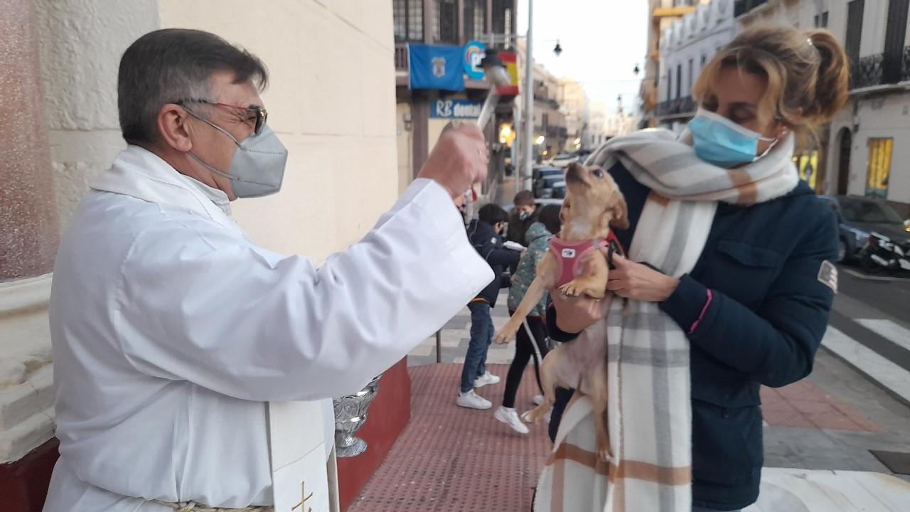Con motivo de la festividad de San Antón, muchos melillenses acudieron junto con sus mascotas, la mayoría perros y gatos, a la Iglesia del Sagrado Corazón de Jesús para que el vicario episcopal, Eduardo Resa, santifique a estos animales con agua bendita frente a un altar en la puerta de la parroquia con la imagen del patrón de los animales.